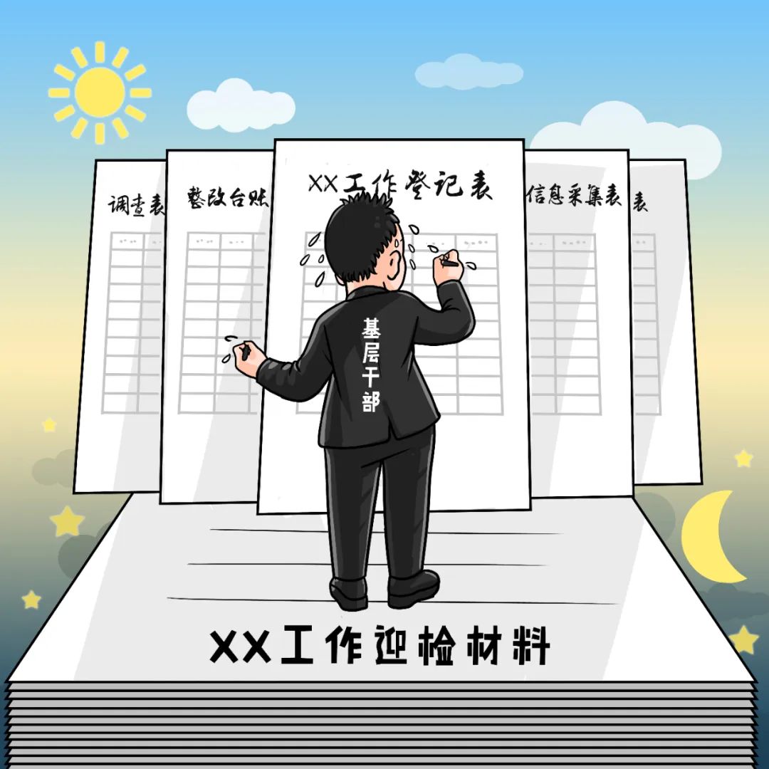 某省某乡镇一位驻村第一书记反映,他们县对村的工作检查考核主要就是看驻村工作材料,驻村工作主要就是填表,各类登记表、调查表、信息采集表、帮扶卡、整改台账……而且对表格、材料的要求,一会儿县里标准,一会儿市里标准,一会儿又是省里模板,三番五次改变,要求重新算账、重新填写、重新上报。为完成填表任务,第一书记忙得“5+2”“白加黑”也招架不住。他说,为打印资料,他们村用坏了3台打印机。