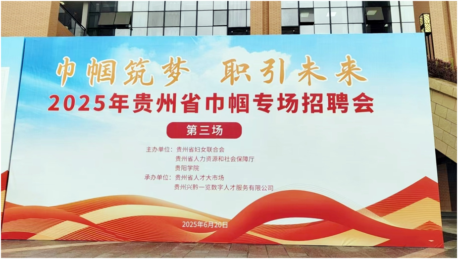 为深入贯彻落实党的二十大精神,积极响应党中央、国务院关于高校毕业生就业工作的决策部署,扎实推进“百日冲刺”就业攻坚行动,充分发挥妇联组织在促进女性就业创业中的桥梁纽带作用,6月20日,由 、贵州省人力资源和社会保障厅、贵阳学院主办,贵州省人才大市场、贵州兴黔一览数字人才服务有限公司承办的“巾帼筑梦 职引未来”2025年贵州省巾帼专场第三场招聘会在贵阳学院成功举办。