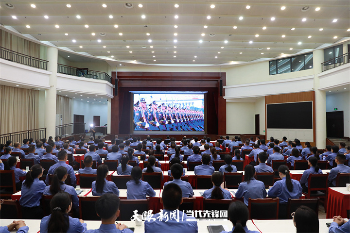 图为武警贵州省总队机关集中收看现场。侯鲁晋 摄
