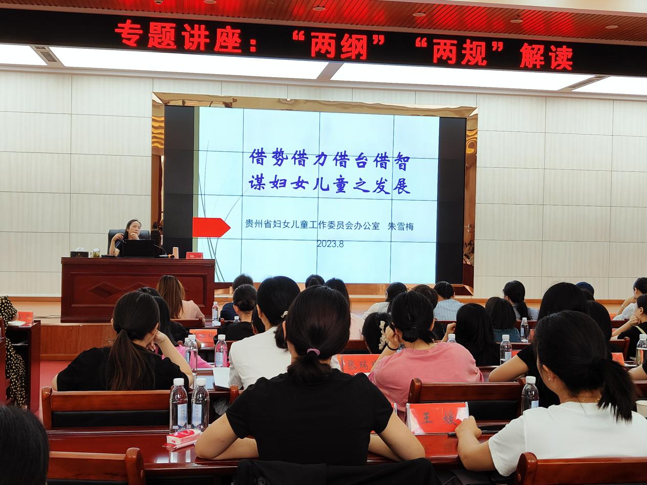 本次培训邀请了中国妇女发展基金会母亲水窖办副主任、中国妇女发展基金会资助项目部高级主管、贵州省家庭教育指导中心骨干教师 、贵州省托育服务行业协会专家为学员们授课,围绕做好党的妇女和儿童工作的重要意义、“两纲”“两规”解读、《中华人民共和国家庭教育促进法》解读、贵州省普惠托育服务现状、“两癌”救助和“母亲水窖”“母亲健康快车”民生公益项目申报管理等内容开展课堂教学,组织学员到灯塔小学等地现场观摩。省妇儿工委办公室有关人员就妇女儿童工作机制建设、“两纲”“两规”示范工作、中小学性别平等教育、“苗圃工程”(0-3岁婴幼儿早期发展)试点工作等内容开展培训。还组织了市州交流发言、小组交流讨论,聚焦学习内容,紧扣工作困惑,相互把脉问诊,积极建言献策,畅所欲言谈体会、说收获。
